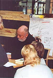 Manfred Bofinger signiert Bücher im Atrium des SWE-Hauptsitzes