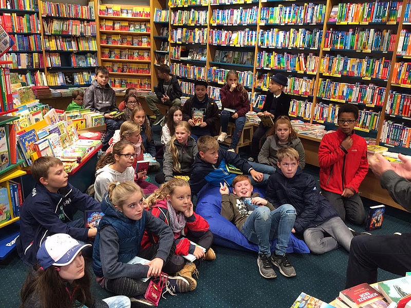 Heute übernehmt ihr das Regiment bei uns! Ab 15 Uhr werden die Schüler der 7. Klasse der Erfurter Edith-Stein-Schule unseren Job machen und die Buchhandlung in eine wahre „Kinderbuchhandlung“ verwandeln. Lasst euch also nicht die Gelegenheit entgehen und euch von den besten Kennern unserer Kinderbücher beraten. Und vielleicht hat ja der eine oder andere unserer Nachwuchs-Buchhändler so viel Spaß an der Arbeit, dass wir ihn in ein paar Jahren als Kollege oder Kollegin bei uns begrüßen dürfen ...