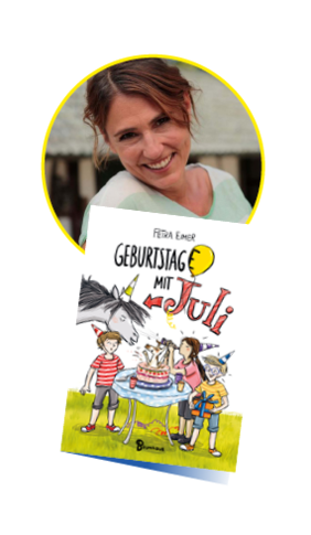 Petra Eimer hat schon als Kind gerne gezeichnet. Am liebsten Pferde. Und Menschen. Und Bäume. In ihrer Heimatstadt Köln war sie fast nur mit dem Fahrrad unterwegs und hat eher selten Pferde gesehen. (Schade eigentlich.) Nach der Geburt ihres Sohnes (Paul) illustrierte sie viele Kinderbücher und wollte dann gerne selbst auch mal eins schreiben. (Oder zwei oder drei oder vier ...) Sie kaufte ein Haus in der Eifel und eine Katze, die gerne ausbüxt und sich in fremden Gärten herumtreibt. Und dann kam Juli ...